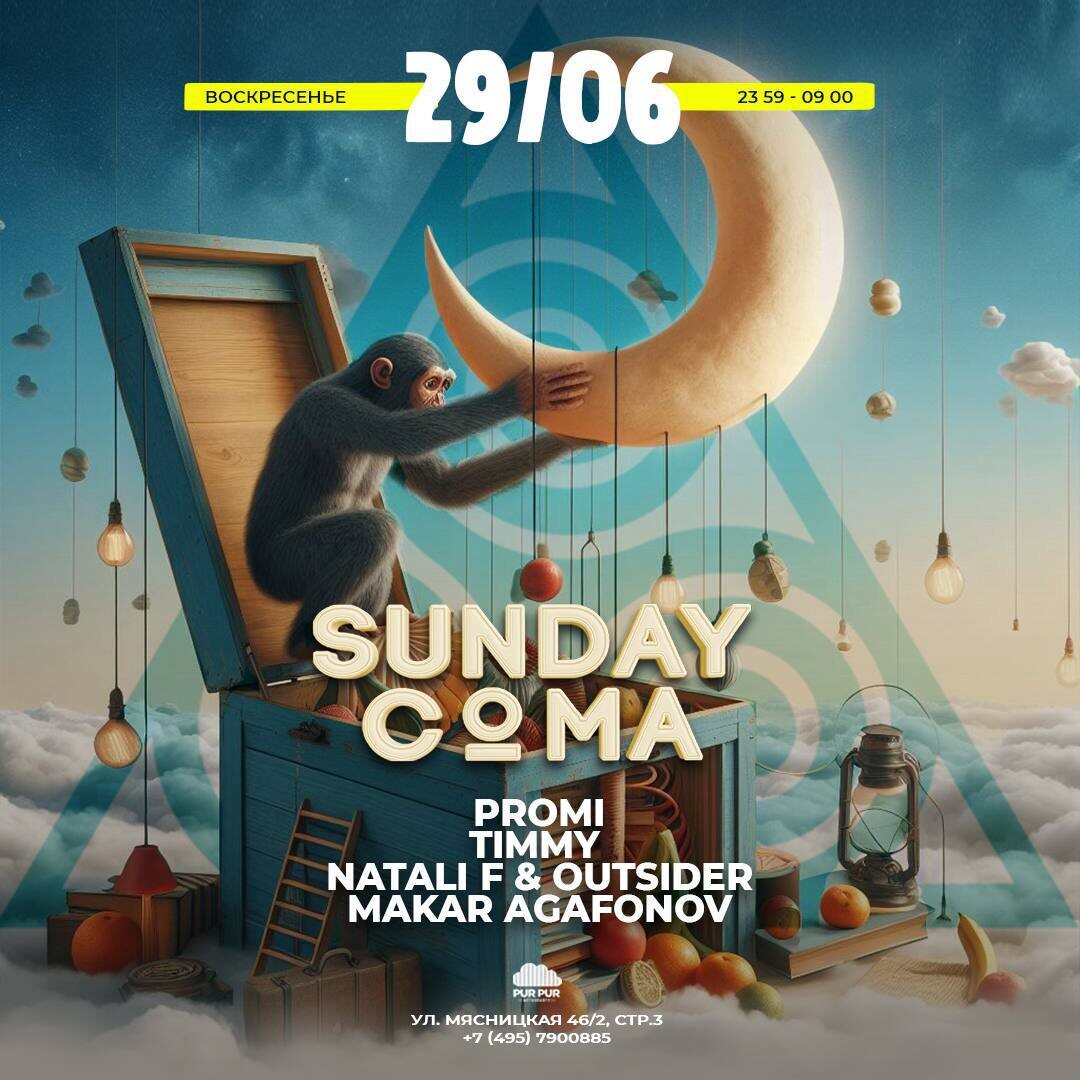 В последнюю ночь июня мы ждем тебя дружественным музыкальным составом Sunday Coma! Классной музыкой и теплыми объятиями встретят: