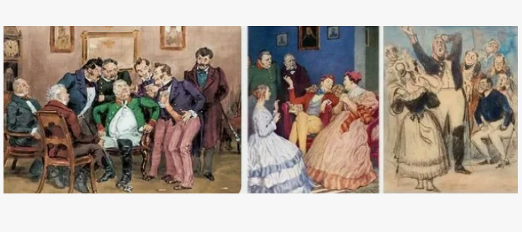 Сразу же судья Ляпкин-Тяпкин и уважаемый горожанин Растаковский стали поздравлять семейство городничего с необыкновенным счастьем.