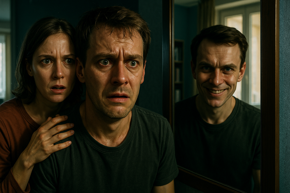 Следующие дни превратились в ад. Мы пытались понять, что происходит. Я читал в интернете про всякие оптические иллюзии, про остаточное изображение на сетчатке, про психические расстройства. Ничего не подходило. А он, тот, в зеркале, становился всё наглее. Он перестал просто отставать. Иногда он делал едва заметные движения, которых не делал я. Почешет нос, когда у меня не чешется. Усмехнётся, когда я серьёзен. А самое страшное — его глаза. Они смотрели на меня с каким-то холодным, оценивающим любопытством. Словно хищник присматривался к жертве.