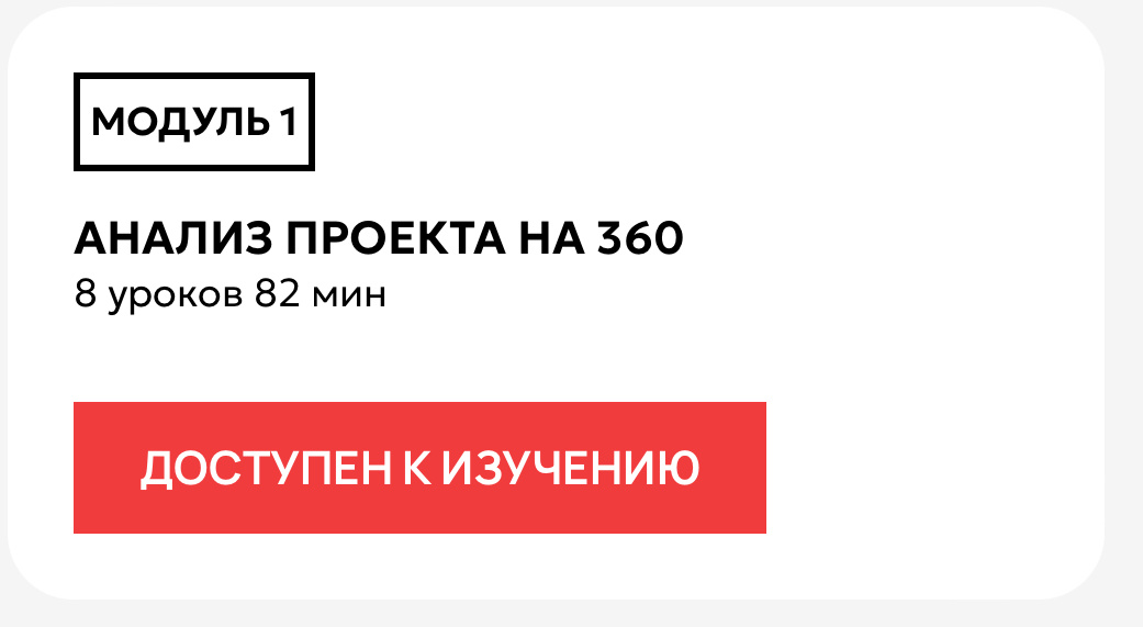 Весь первый модуль из восьми уроков посвящен именно тому, чтобы обучить вас эффективному анализу проекта.