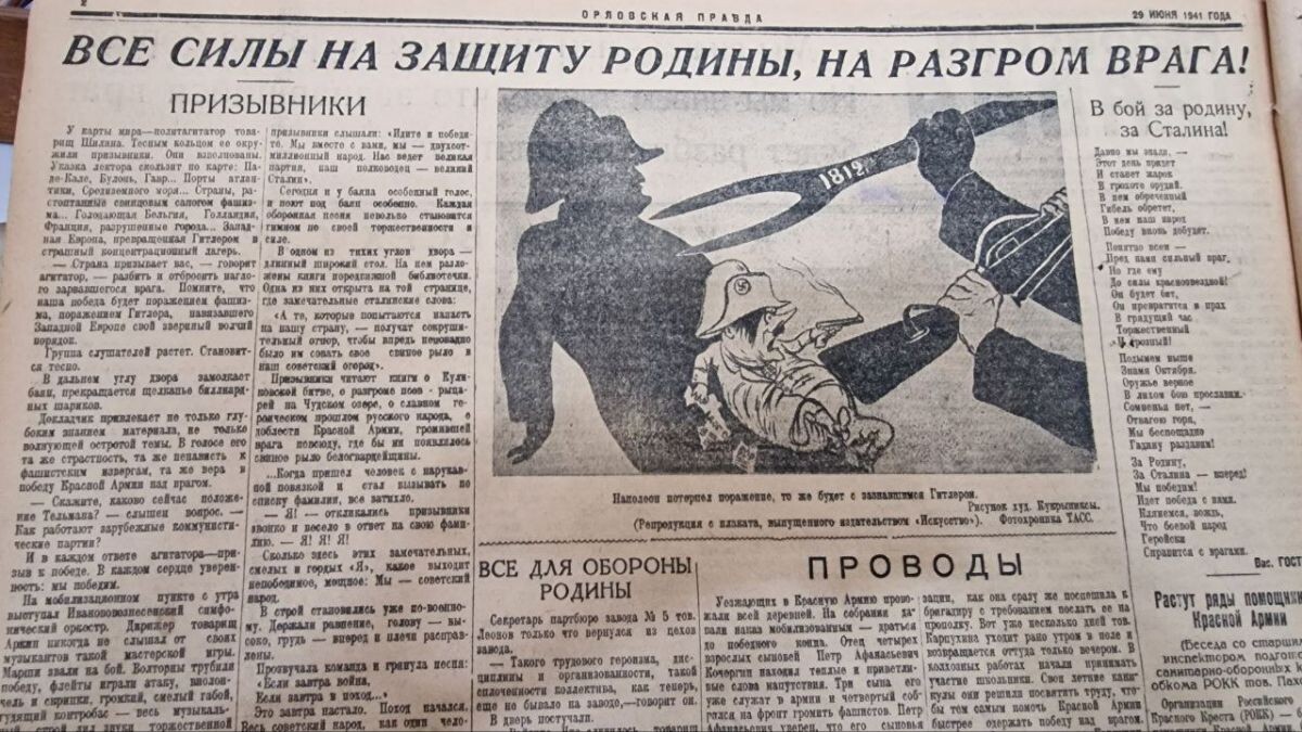 "Мы – советский народ": о чем писали орловские газеты в восьмой день Великой Отечественной войны