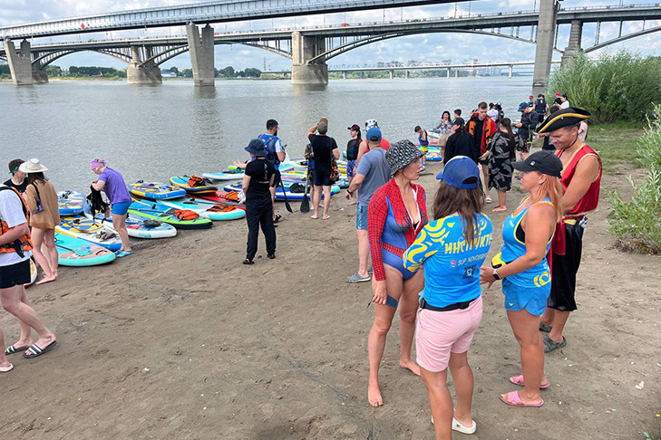 Сплав на сап-досках стартовал в 10 часов утра в Европейском берегу. Участники заплыва планируют доплыть большой командой до Заельцовского парка. Как сообщил VN.ru организатор мероприятия Евгений Попов, заплыв приурочен к празднованию 132-летия Новосибирска, и присоединиться к большой дружной команде мог любой желающий. В итоге собралось более 150 любителей активного отдыха. Большинство пришли со своими досками, а некоторым выдали весь необходимый инвентарь. В Заельцовском парке финишировавших будут ждать специально подготовленные автобусы, их выделила мэрия Новосибирска. Поскольку заплыв праздничный некоторые участники не постеснялись прийти в карнавальных костюмах. Сап-бордисты отмечают, что массовые, необычные, хайповые мероприятия — это то, что продвигает и популяризирует данный вид спорта. По словам участников заплыва, Сапбординг — это совершенно нетривиальный способ классно провести время на свежем воздухе. Катание на доске позволяет отключиться от цифрового мира и суеты, побыть н