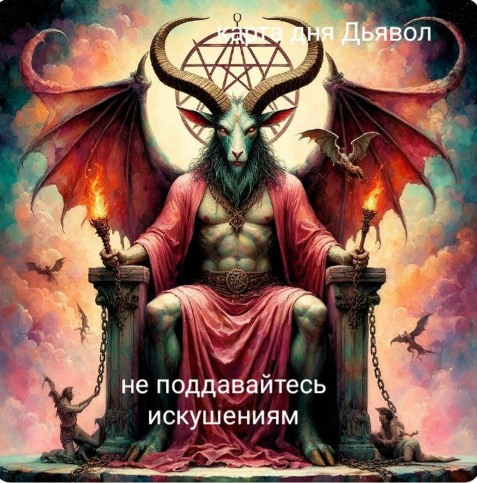 Карта дня Дьявол День борьбы с испытаниями, искушением и дурным влиянием. Не стоит подаваться чувствам, снимите пелену с глаз и действуйте рационально. Не бойтесь вернутся на правильный путь.