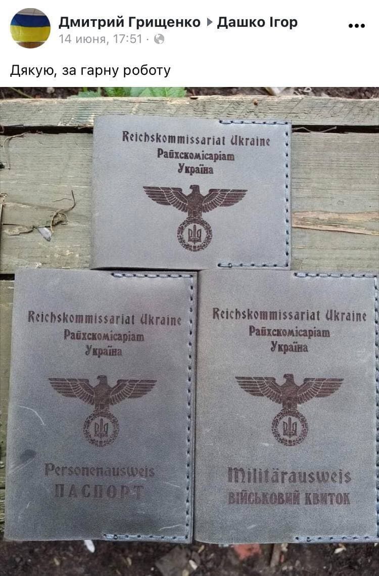 На фото с Украины - обложки на удостоверение участника боевых действий, паспорта и военного билета. Эти изделия пользуются особой популярностью среди укронацистов, которые принимают участие в боевых действиях.