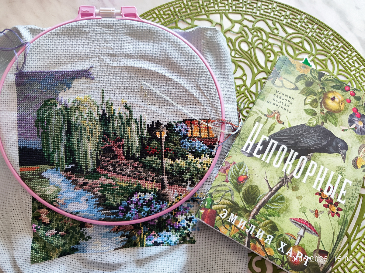 В этом году весной я начала вышивать свою давнишнюю хочушку, свою мечту - BEDFORDSHIRE sunset от Dimensions 😊. На самом деле оригинальный набор мне не удалось приобрести по объективным причинам, и я заказала сборку у одной девочки. Заявлены в сборке оригинальные комплектующие. Не скажу, что у меня богатый опыт по вышивке наборов от этой легендарной фирмы, но претензий у меня нет) Возможно, комплектующие действительно оригинальные, во всяком случае похожи на оригинал. За вышивку взялась с огромным удовольствием и процесс полетел. Конечно, скорость в вышивке у меня невысока, и времени маловато для хобби, но, главное, что работа продвигается, и мне совсем не хочется выпускать её из рук. Тем более , что у меня уже есть вышитый парный сюжет к этому домику, его очаровательная садовница. Кстати, садовницу я тоже вышивала по сборке, правда от другой девочки и там использовались не оригинальные комплектующие. Но результат мне всё равно нравится)