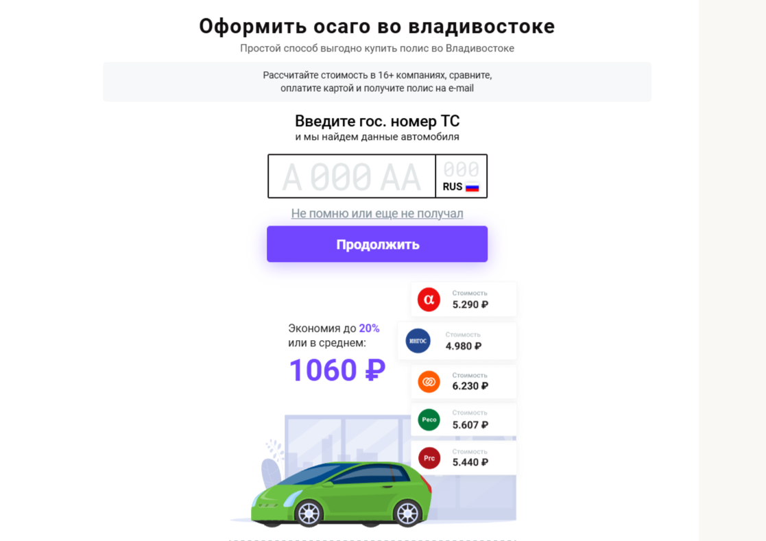 - Сравнение предложений: Легко сравнить цены и условия разных страховых компаний.