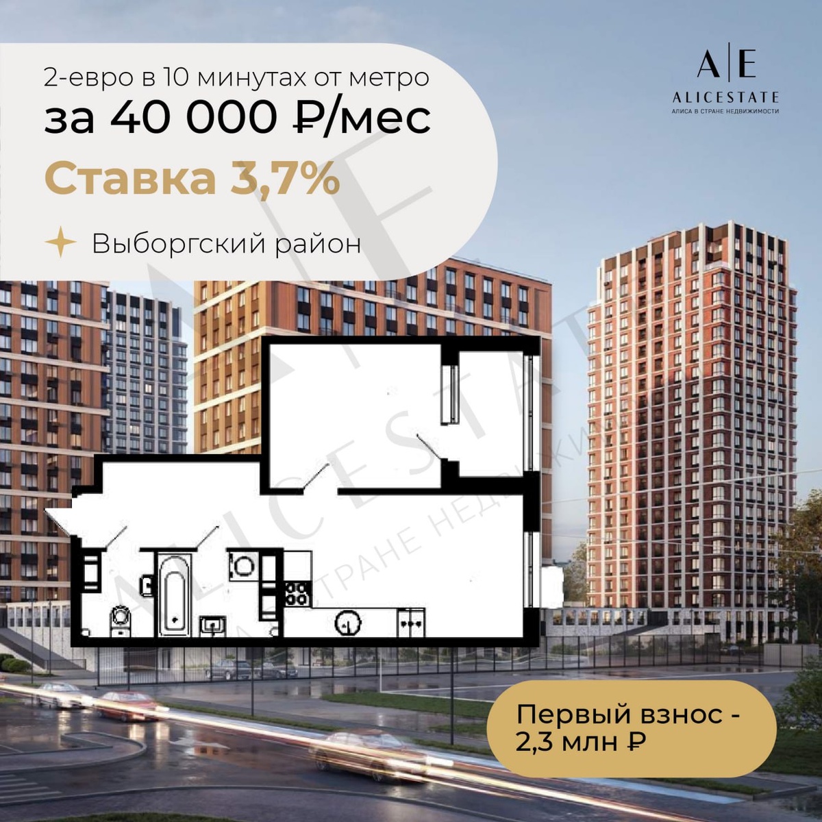 🔥 2-евро в Выборгском районе со ставкой 3,7% на весь срок