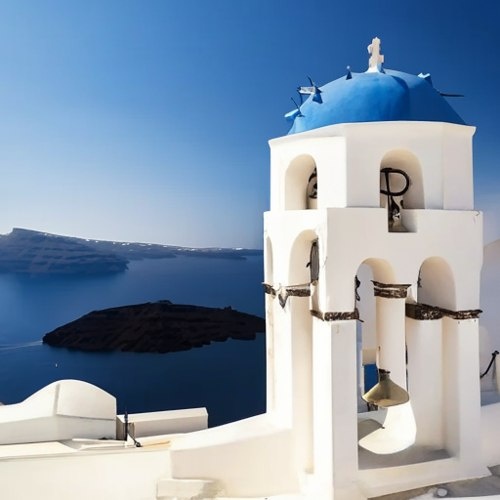 Белые дома на краю кальдеры над бирюзой Эгейского моря
