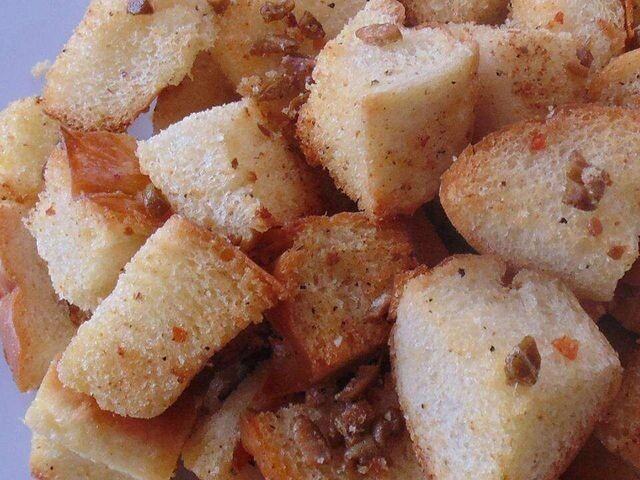 Оливковые крутоны Еще один рецепт гарнира, который я также подаю к супу из жареных помидоров. Отлично подходят для салатов, особенно греческих. ⌛ Подготовка: 10 мин. ⏰ Приготовление: 20 мин. 🍴 Количество: 4 порции Ингредиенты ✅ 1 столовая ложка оливкового масла высшего сорта ✅ 1 столовая ложка тапенада (оливкового спреда) ✅ 4 ломтика хлеба чиабатта, порезанного на кубики. Инструкция приготовления 1. Разогрейте духовку до 190 градусов C. 2. Размешайте оливковое масло и тапенад в большой миске, добавьте кубики хлеба и перемешайте. Выложите кубики на лист для выпечки. 3. Запекайте в предварительно разогретой духовке до золотисто-коричневого цвета, 8-10 минут. Полностью остудите перед хранением в герметичном контейнере. 📷 https://furshett.ru/uploads/garniry/0f04903f-8659-4379-a2ce-010fe01c007d.jpg 👌 Больше рецептов на Furshett.ru 👉 https://furshett.ru/garniry/olivkovye-krutony-945392