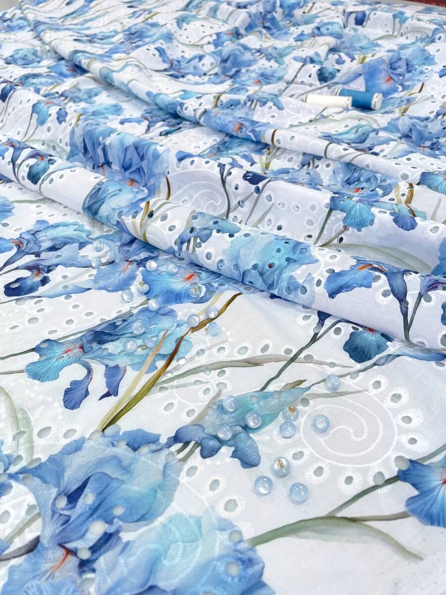 Смотрите какое очаровательное хлопковое шитье с ирисами, это что-то невероятное! Оочень красиво выглядит вживую Небесно-голубые ирисы на белом фоне. Прекрасный вариант для пошива платья, сарафана, рубашки и т.д. Ширина: 1м 30см. Состав: 100% хлопок Производство: Италия. Для вопросов и заказа пишите пожалуйста по этой ссылке: Ждём Вас ежедневно, с 10:00 до 20:00, по адресу: г.Москва, ул Мневники, д.6, п.6