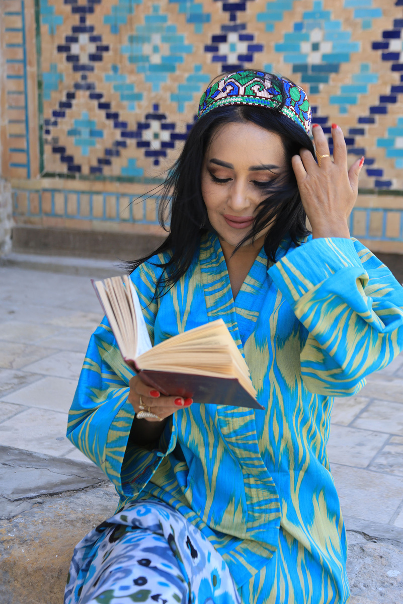 Ковры и каллиграфия По следам Омара Хайяма (8 часть) Ковры и каллиграфия «Каллиграфия – это геометрия души, выраженная через тело» Ибн Халдун Эти две страсти захватили Абдулгафура Раззакова с детства. Потомственный каллиграф он еще создал производство и продажу шелковых ковров в Бухаре. И всё на высшем уровне. Его красивые изысканные каллиграфические работы украшают новые мечети, надгробные камни, книги. А магазин ковров похож на дворец в центре Бухары. С гигантской люстрой, внутренними балконами, деревянными колонами и, конечно же, с тысячей, сказочно прекрасных ковров. Вся большая семья Раззаковых работает там. Еще Абдулгафур имам в историческом комплексе суфийского братства - тариката Накшбанди. Комплекс Бахауддин — культовый ансамбль, находящийся в окрестностях Бухар