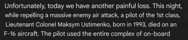 Zelensky admits losing 'another' US F-16 & killed pilot — Ukrainian air force statement