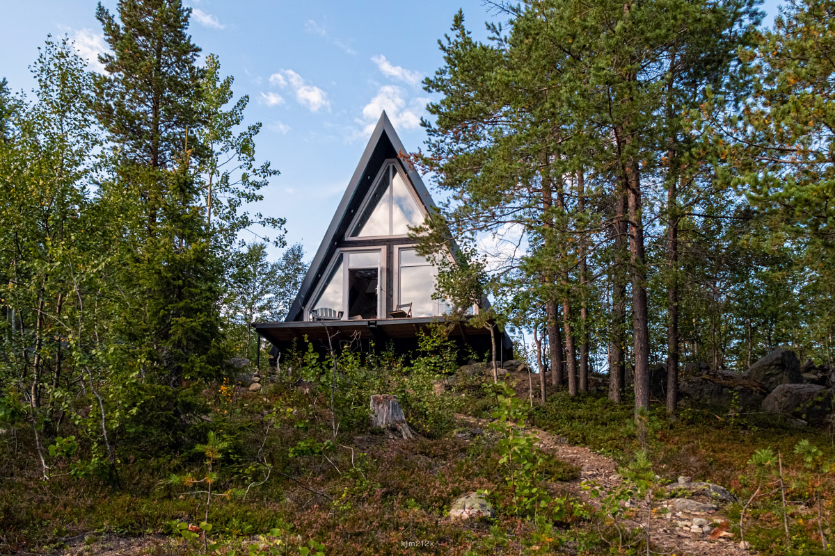 Заключительную часть поездки, как и в предыдущий раз, решили провести в окрестностях Кандалакши. Годом раньше мы останавливались в ДубльДоме на Волосяной сопке, а в этот раз испробовали и второй домик тех же хозяев - А-фрейм на соседней сопке Крестовой. Домик тоже симпатичный и инстаграмный, но на наш взгляд значительно хуже красного ДубльДома. Самый основной недостаток, чем грешат все домики со спальным местом под потолком, в каких мы были - наверху ужасно жарко и душно, во всех таких проектах катастрофически не хватает банальной форточки на верхнем ярусе. Даже если открыть настежь обе двери, то получаешь только дикий сквозняк внизу, а наверх свежий воздух не попадает вообще никак. Второй существенный косяк - на момент нашего заселения в домике не было воды. Питьевую воду в ДубльДом тоже приходилось тащить с собой, но по крайней мере там была техническая вода. Здесь же предполагалось и техническую таскать ведрами из близлежащего пруда. Ну и виды из А-фр