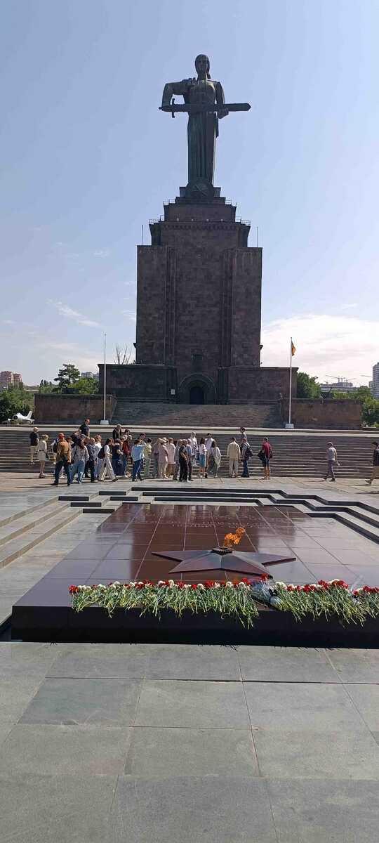 Наша группа соотечественников из разных стран мира — у огромного скорбного монумента. Через 26 лет после того трагического 1941 года над Ереваном вознеслась «Мать Армения». Говорят, что прообразом её стала девушка из очереди за помидорами. И этот образ девушки был поставлен на постамент, на котором прежде, казалось на века, стоял один из Спасителей Отечества, Верховный Главнокомандующий, чей авторитет был незыблем даже у его врагов.