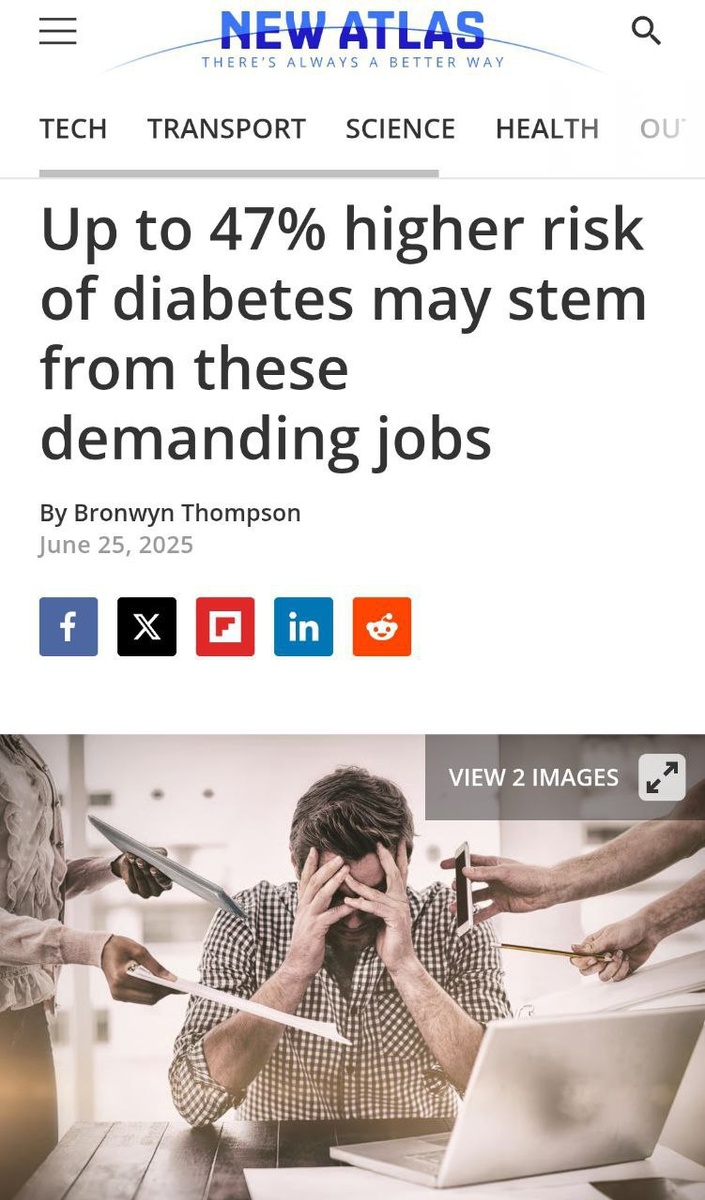 Работа с людьми повышает риск диабета сразу на 47% (!) — исследование. Общение, эмоциональные перегрузки, регулярные конфликты — всё это бустит уровень стресса, активирует симпатическую нервную систему, сбивает гормональный фон и буквально ломает обмен веществ. В список потенциально опасных профессий попали учителя, медсёстры, соцработники, водители, охранники, юристы и сотрудники сферы обслуживания. Идем работать на маяк. @nejroai