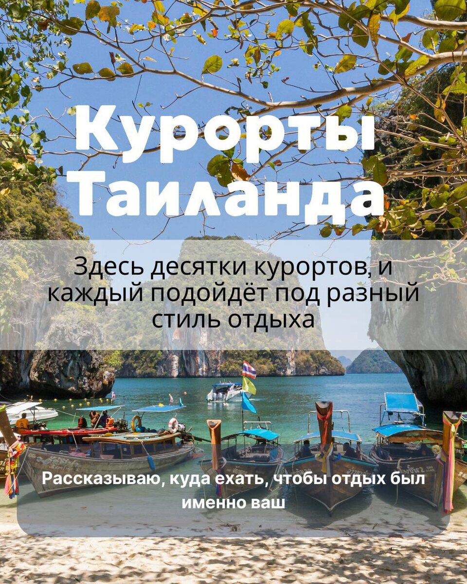Курорты Таиланда🇹🇭 Здесь десятки курортов, и каждый подойдёт под разный стиль отдыха. Рассказываю, куда ехать, чтобы отдых был именно ваш👇 📍Бангкок – мегаполис с душой 🌆 ❗️Сезон: ноябрь – март 🗺 Прямой перелёт из РФ ✅ Дворцы, храмы, шопинг, уличная еда, плавучие рынки ❌ Не для пляжного отдыха, шумно и жарко 📍Паттайя – город у моря 🏙 ❗️Сезон: круглый год 🗺 ~2 ч от аэропорта Бангкока ✅ Шопинг, экскурсии, ночная жизнь ❌ Море не самое чистое, шумно 📍Пхукет – универсальный выбор 🏝 ❗️Сезон: ноябрь – апрель 🗺 Прямой перелёт ✅ Курорты на любой вкус: от тусовочного Патонга до уединённого Наярна ❌ В сезон — многолюдно, вне сезона возможны дожди 📍Ко Самуи – зелёный остров и мягкий климат 🌴 ❗️Сезон: февраль – сентябрь 🗺 Прямой рейс из Бангкока ✅ Курортный остров с зеленью, бухтами и развитой инфраструктурой ❌ В ноябре–январе часто идут дожди 📍Краби – живописная природа и спокойствие 🌄 ❗️Сезон: ноябрь – апрель 🗺 30 мин перелёт от Бангкока или 2,5 ч трансфер с Пхукета ✅ Ска