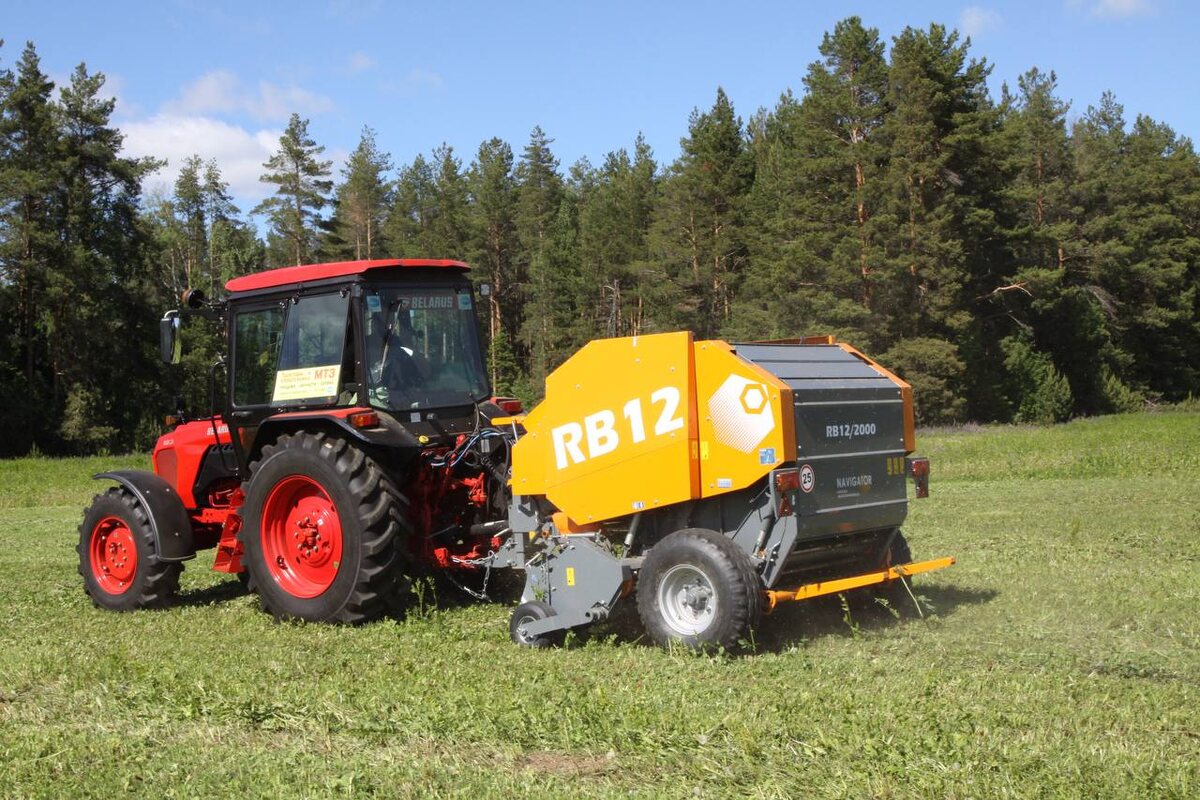 ПРЕСС-ПОДБОРЩИК RB12 и RB12NW ЭТО : ✓ Пресс-подборщик имеет постоянную камеру прессования с диаметром 1,2 м с бесконечным прессующим транспортером; ✓ Пресс-подборщик оснащен укладчиком, который создает безостановочный поток прессуемой массы в камеру прессования, что способствует получению рулонов правильной цилиндрической формы; ✓ Транспортерная камера проста и недорога в обслуживании и ремонте; ✓ Натяжка транспортёра производится пружинным блоком и не требует частых регулировок. Такой вариант исполнения не допускает ослабления в моменты открытия камеры и разрыва при резком включении транспортёра; ✓ Улучшенный уравновешивающий аппарат на подборщиках, позволяет работать на максимальных скоростях с сохранением целостности элементов подборщика; ✓ Процесс формирования рулона и, в частности, контроль плотности рулонов осуществляется посредством манометра и регулировкой автоподачи прямо на нём, что позволяет механизатору уделять больше внимания на управление трактором и не следить за давлени