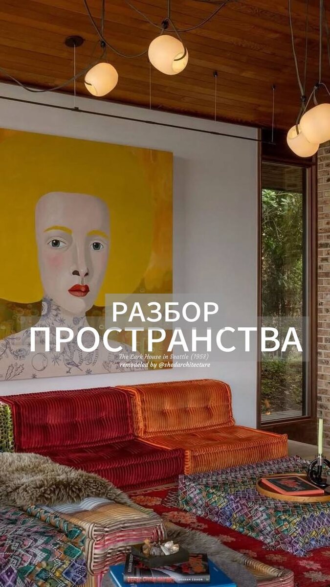 Разбор дома (Чтение 3 минуты) The Lark House in Seattle (1958) remodeled by @shedarchitecture Photos via @theatomicranch Дом, наполнен выразительными слоями, говорящими о человеке с глубокой внутренней структурой, эстетическим чутьем и многослойной психикой. Давайте разберемся по уровням, используя пространственно-ориентированную психологию, цветоанализ и работу с архетипами? Архетип владельца дома Здесь явно проявлен архетип Творца / Художника в союзе с Мудрецом и Хранителя: • Творец проявлен в эклектике, любви к ярким, смелым цветам и сочетаемости несочетаемого. Это человек, для которого пространство, как холст. • Мудрец, в структуре, в геометрии, в уважении к дереву, камню, тактильности, качеству света. В доме много предметов, но нет хаоса, а это говорит об осознанности владельца. • Хранитель, проявлен в наличии камина, продуманного освещения, зонировании территории. Пространство выглядит не просто стильным, но очень заботливым и любящим. Цвет и текстура как выражение внутренне