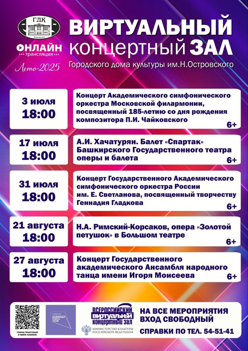 В июле и августе 2025 года в Городском доме культуры им.Н.Островского продолжится работа Виртуального концертного зала.