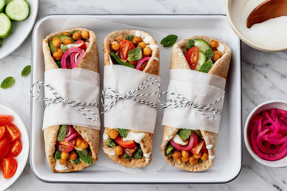 Эти овощные шаурма-роллы с нутом легко могут стать любимым блюдом недели. Внутри — обжаренный нут со специями, кремовый хумус, пряный соус из кинзы и острый йогуртовый соус. Всё это собирается в тёплой пите с овощами и зеленью — и получается невероятно вкусно. Приготовьте нут