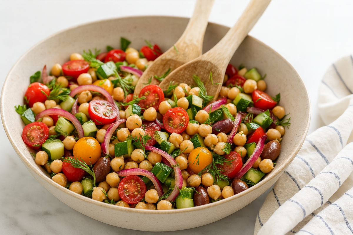 Этот салат с нутом — не просто быстрая закуска, а полноценное блюдо с насыщенным вкусом, богатым белком и ароматом свежих трав. Идеально подходит для летнего пикника, лёгкого обеда или как полезное дополнение к основному блюду. Приготовить его проще простого, а съедается он ещё быстрее. Для заправки: Для салата: Приготовьте заправку.