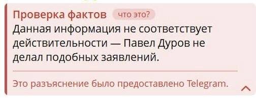 В Telegram появилась новая функция — фактчекинг. Плашка «Проверка фактов» будет появляться под публикациями с недостоверной информацией, сообщает канал «Код Дурова». Впервые ее заметили в посте с новостью о якобы уходе мессенджера из России. Нововведение должно помочь в борьбе с фейками. Ошибки разъясняет автоматически сама платформа Telegram, а не авторы канала. ⭕ Подписаться | Прислать новость | Буст