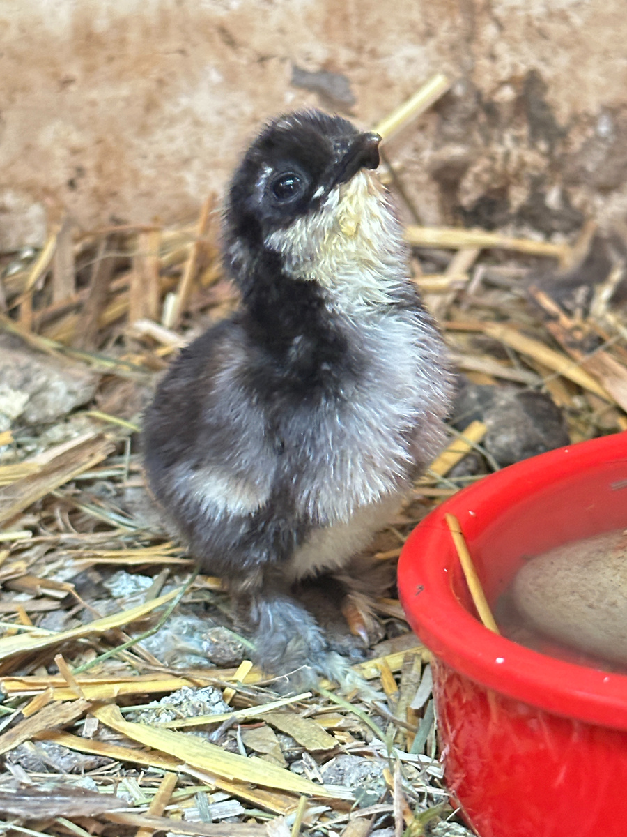 Такого не должно было случиться – во-первых, и во-вторых – такое невозможно (по моим, по крайней мере, представлениям)! И тем не менее – вот он: цыпленок этот! Как он получился – представления не имею, а как сложились обстоятельства – вот так сложились. Все очень надежно было организовано: рыжая шелковая курица приступила к насиживанию десятка яиц в самом для насиживания приспособленном домике. Чтобы соседи ей не досаждали и не подкладывали дополнительных яичек, вход в домик закрываю решетчатой загородкой. Утором открываю и выгоняю наседку поесть-попить-погулять. Она сама возвращается, и вход опять закрываю. Такого не должно было случиться, но на днях закрыл не плотно – и уехал. А утром следующего дня обнаружил наседку в общей вольере: сдвинула она незафиксированную загородку – на такое у любого ума хватит, а открыть, чтобы вернуться, – уже смекалки нет (на этом принципе основываются многие ловушки для животных). Вот и осталась кладка без наседки за несколько дней до намечавшегося вы