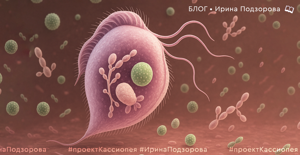 То же самое происходит, например, с хламидией, которая тоже может жить внутри трихомонады и даже разноситься ею на другие участки слизистой или по крови. Это внутриклеточное, значит, она её не съела, а заразилась.