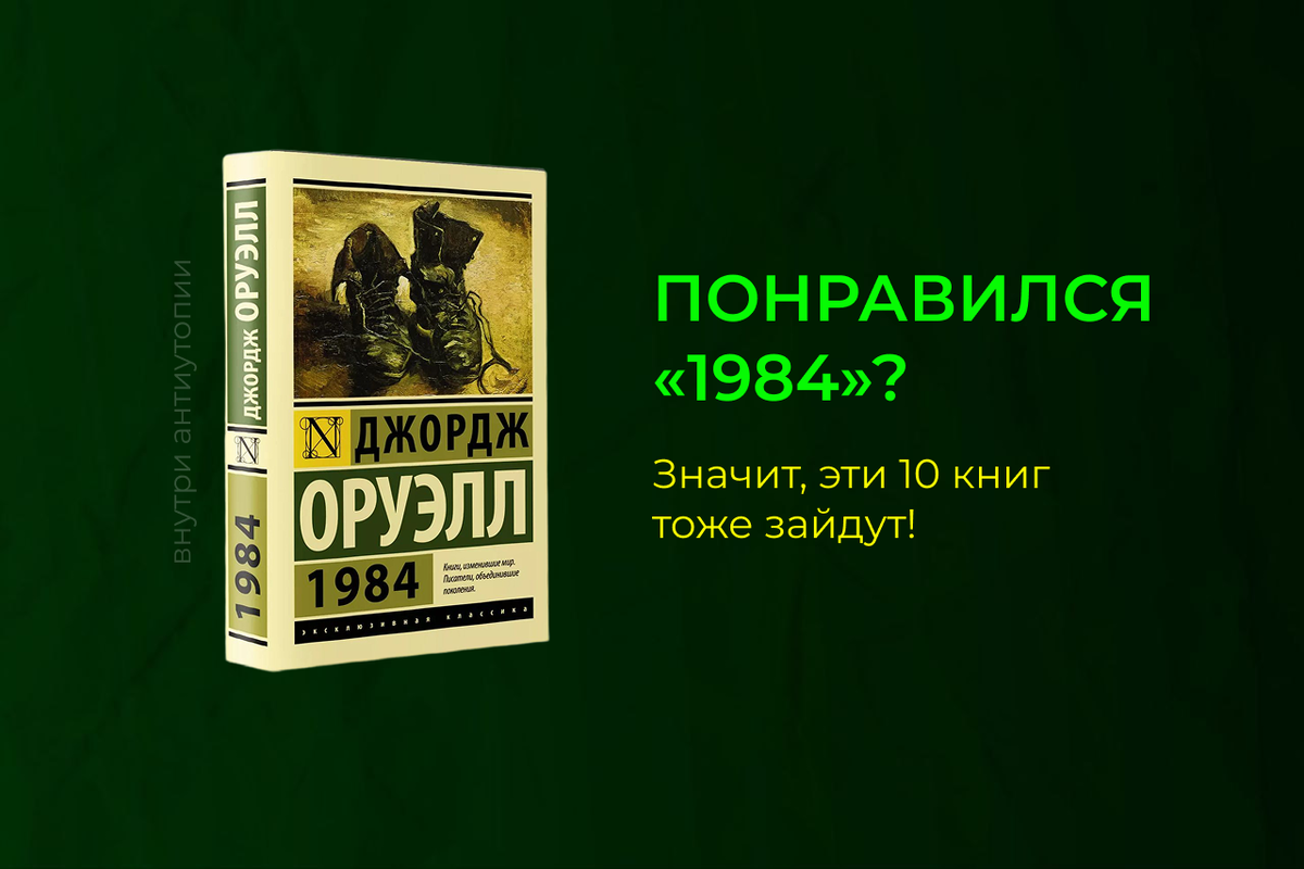 Если вас зацепила мрачная атмосфера «1984», история Уинстона Смита и пугающий образ Большого Брата — эта подборка для вас. Десять сильных антиутопий, которые поднимают темы тоталитаризма, подавления личности, контроля над сознанием и борьбы за свободу. Подборка составлена на основе личного читательского опыта и отзывов других читателей. 1. «Мы» — Евгений Замятин Сюжет: первый в мире антиутопический роман о безличном государстве будущего, где люди — нумера, а личная жизнь упразднена. Герой начинает сомневаться в системе. Почему похожа: Оруэлл признавал, что вдохновлялся «Мы». Общие темы — контроль над личностью, подавление индивидуальности, тотальный надзор. Отзывы: называют философски глубоким и поэтически точным. 2. «О дивный новый мир» — Олдос Хаксли Сюжет: в мире будущего счастье обеспечивается искусственным размножением, наркотиками и потреблением. Но есть те, кто не вписываются. Почему похожа: альтернатива «1984». Если у Оруэлла контроль через страх, то у Хаксли — через удовольст