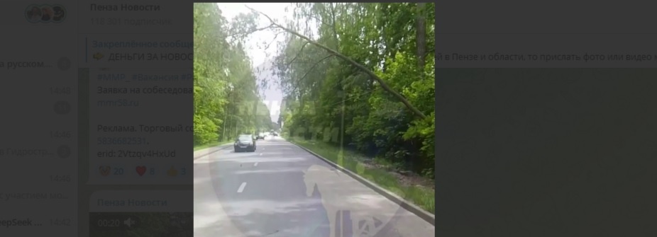 В Пензенской области на дороге из Ахун в сторону Леонидовки на проводах над проезжей частью нависло дерево, сообщают очевидцы. Эта ситуация создает серьезную угрозу безопасности дорожного движения. Информация о нависшем дереве поступила от подписчика гродских телеграм-каналов. Пока неизвестно, что стало причиной инцидента – сильный ветер, болезнь дерева или другие факторы. Нависшее дерево может привести к обрыву проводов и создать аварийную ситуацию на дороге. Кроме того, существует риск падения дерева на проезжающие автомобили. В настоящее время неизвестно, были ли оповещены соответствующие службы о данной ситуации. Водителей призывают быть предельно внимательными на указанном участке дороги.