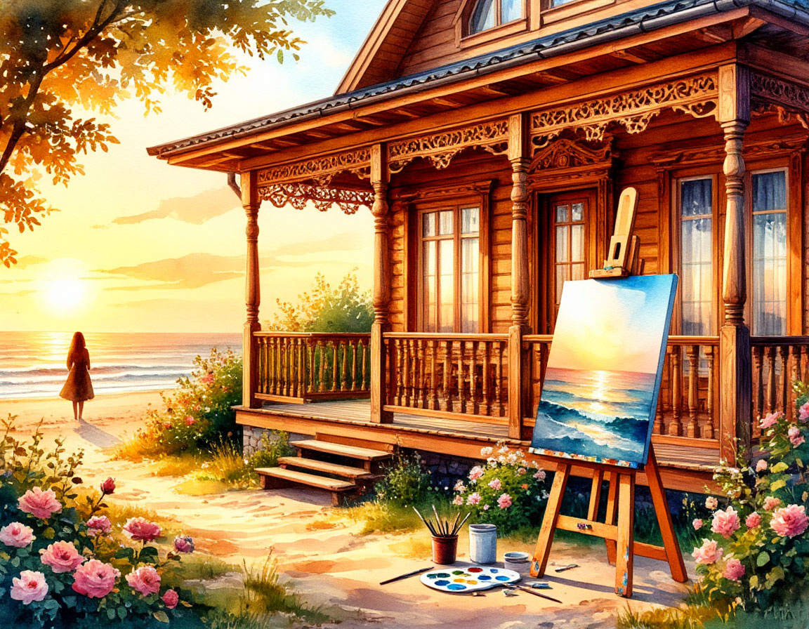 В субботу утром Анна проснулась раньше обычного. За окном занимался рассвет, окрашивая море в невероятные оттенки розового и золотого. Не думая, она схватила мольберт, краски и выбежала на берег.