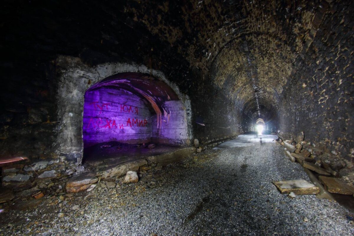 Начнем мы с самой популярной заброшки Урала! Заброшенный железнодорожный тоннель длиной 1123,7 м. Был построен более века назад – в 1918 году. Въездные порталы по форме напоминают крепостные башни с бойницами и зубцами. Помимо основного тоннеля, имеются дренажные тоннели и система вентиляции. В наши дни тоннель привлекает многочисленных туристов.