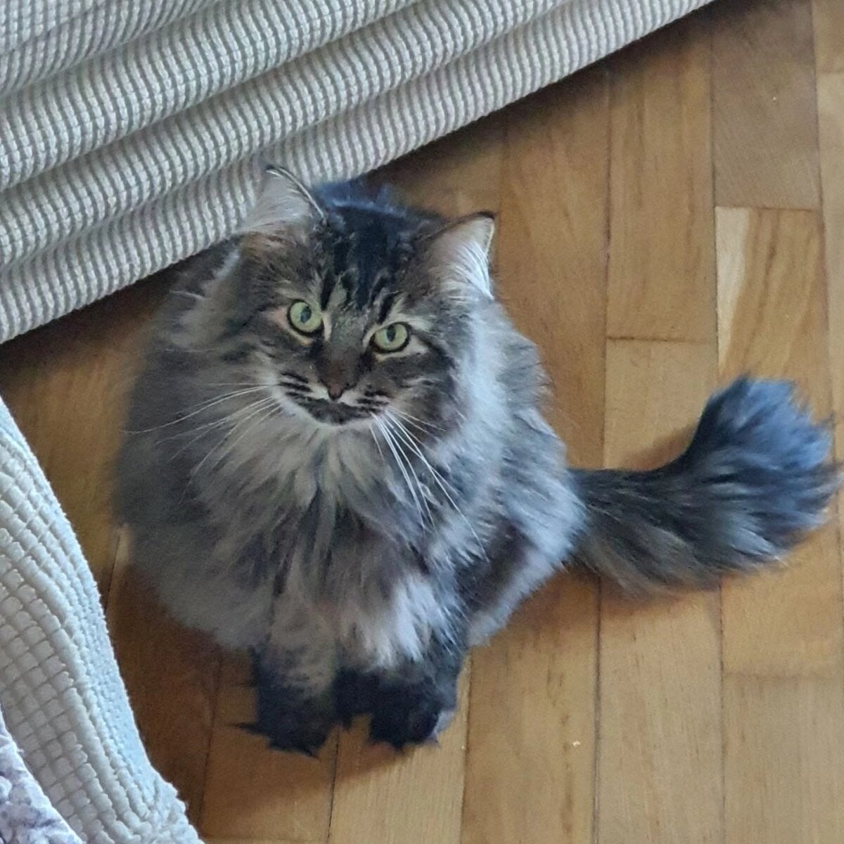 Приветик из дома от Митяя. Его теперь зовут Зевс, в соответствии со строгим поведением =)) Требует разнообразной еды, качественной поглажки, и освободить диван э, когда его величеству охота полежать. В общем, мы не смеем перечить))