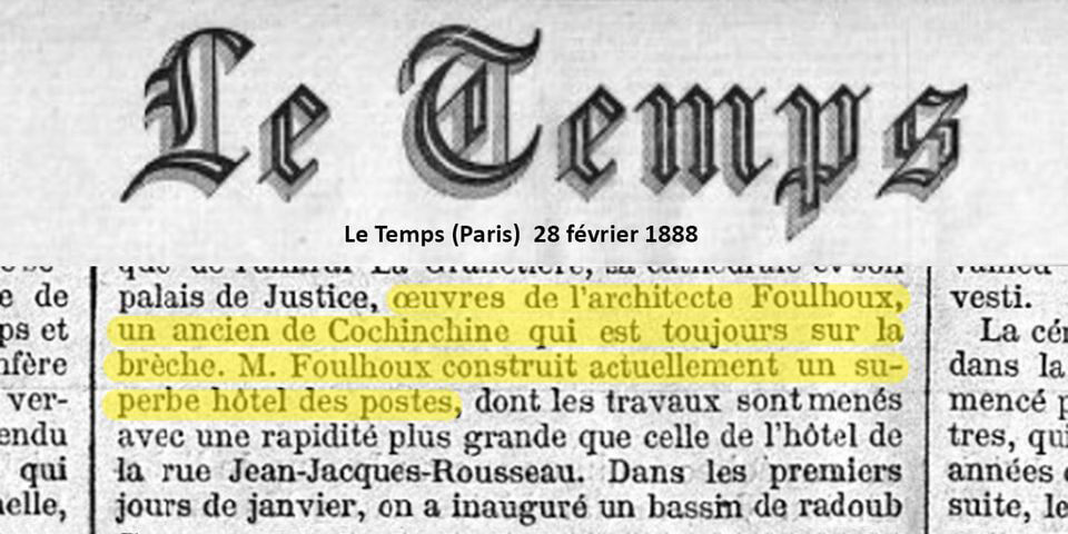 На втором фото вы видите страницу из французского архитектурного журнала за 1891 год, где прямым текстом написано, что «этот памятник, украшенный весьма артистичным фасадом, особенно хорошо приспособлен для различных служб, для которых он предназначен; он делает величайшую честь мастерству и таланту выдающегося главного архитектора колонии г-на Фулю».