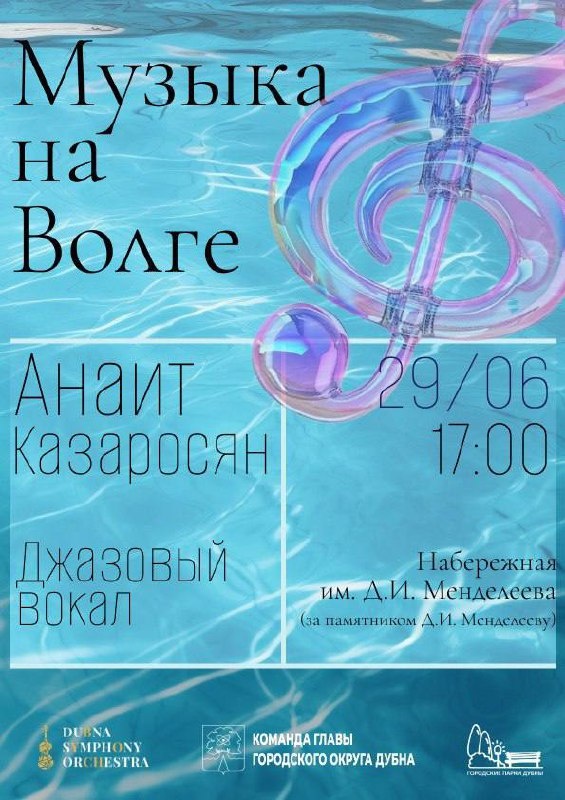 🎙 Сегодня дубненцев и гостей города снова ждёт музыкальный подарок. В 17:00 начнётся концерт в рамках фестиваля «Музыка на Волге». Участницей проекта станет эстрадно-джазовая певица Анаит Казаросян. @Телеканал «Дубна»