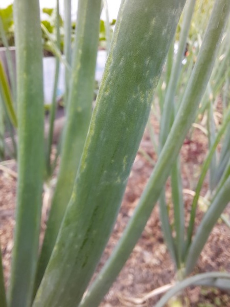 Если лук выращивается на перо или вы, как большинство из нас, начинаете употреблять лук с перьями, пока сама луковица растет, то химические пестициды под запретом - у них большой срок ожидания. Можно воспользоваться биопрепаратом Алирин-Б, в нем содержится штамм сенной палочки, эффективный против Peronospora destructor. Но учитывать, что это биопрепарат, а значит, результат будет далек от ста процентов.