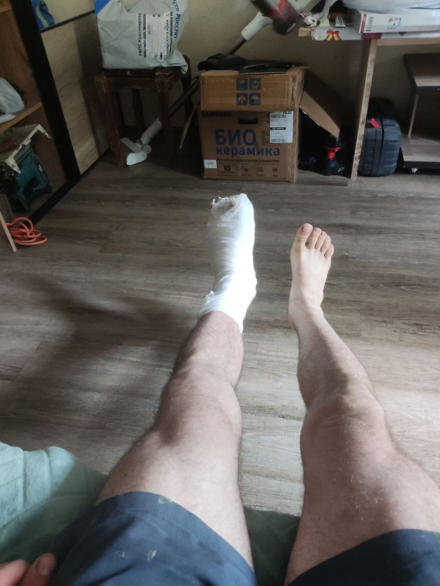 Строительство бани — дело серьёзное, но и про отдых забывать нельзя. Обещанный сыну рыбалный выезд наконец состоялся, правда, без эпичных кадров — то ли рыба стеснялась, то ли крючки подвели. Зато открыли уютное озерцо в шаговой доступности. Разведка прошла успешно: эмоции, адреналин (пришлось даже в воду прыгать за сорвавшейся рыбиной) и твёрдое решение — вернуться сюда снова, но уже во всеоружии. После рыбалки — снова стройка. Взяли в аренду 100-килограммовую виброплиту (не каждый день в Шерегеше так заморачиваются, но наши ребята знают толк в надёжном фундаменте). Вчетвером загрузили, потом два часа «утюжили» щебёночную подушку — семь проходов, чтобы добиться идеальной плотности. Результат — гладкое, ровное основание, готовое принять бетон. Вечером, как только лазерный уровень стал достаточно ярким, разметили углы будущего фундамента. Всё шло по плану… Утро началось с пробежки — казалось бы, обычное дело. Но один неловкий шаг на бордюр — и вот уже рентген показывает перелом в основа