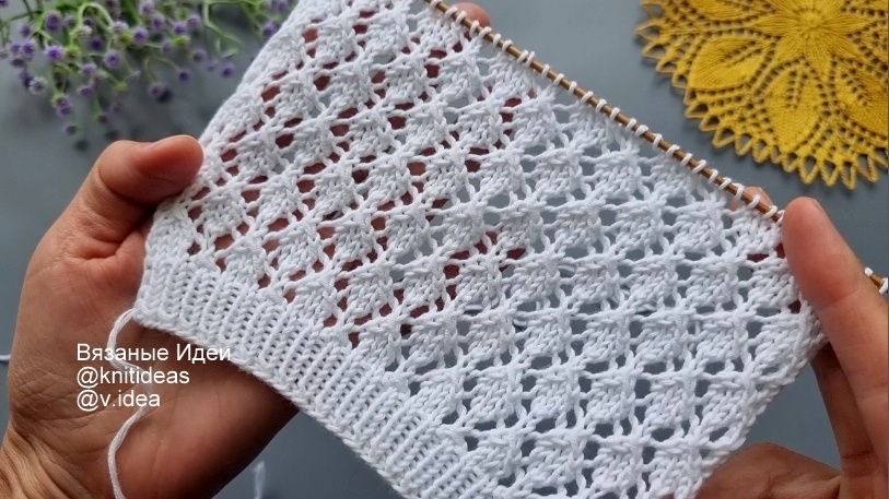 Всем привет! Сегодня рассмотрим красивый сетчатый узор с мелкими листочками. Отличный вариант для летних изделий. Вяжется не сложно поворотными рядами и по кругу. Внимание! При копировании и публикации моих материалов на других ресурсах указывайте активную ссылку на источник: канал Вязаные Идеи Описание вязания: Раппорт 6 петель и 8 рядов Количество петель кратно 6 +2 +2 кром 1 ряд: кром, 1 лиц, *накид, 3 вм. лиц, накид, 3 лиц*, 1 лиц, кром 2 ряд и все четные ряды вязать изнаночными 3 ряд: кром, 2 вм. лиц. вправо, *накид, 1 лиц, накид, 2 вм. лиц. влево, 1 лиц, 2 вм. лиц. вправо*, накид, кром 5 ряд: кром, 1 лиц, *3 лиц, накид, 3 вм. лиц, накид*, 1 лиц, кром 7 ряд: кром, накид, *2 вм. лиц. влево, 1 лиц, 2 вм. лиц. вправо, накид, 1 лиц, накид*, 2 вм. лиц. влево, кром. Повторять с 1 по 8 ряд Для кругового вязания наберите количество петель кратное 6 и вяжите только раппорт, выделенный красным цветом. Четные ряды вязать лицевыми петлями. Посмотрите подробное видео как вязать этот узор: Все