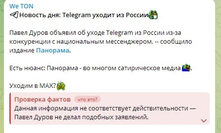 Блок «Проверка фактов» был замечен под постом канала о токенах TON: https://t.me/weton/1328.
