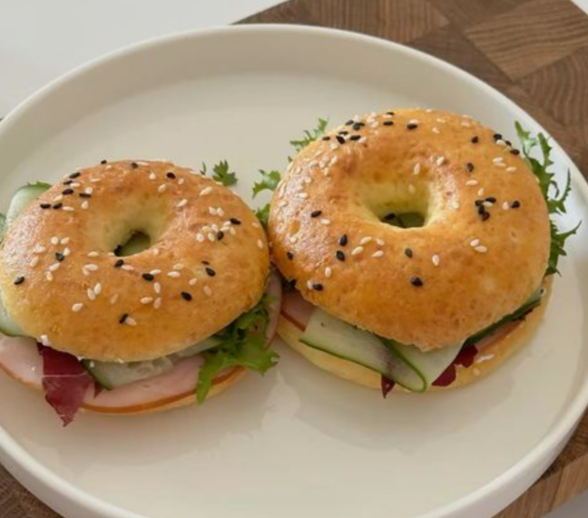 Формируем форму бейгла (по типу бублика). Сверху можно посыпать семена/орешки/кунжут. Выложить на противень. Обмазать яйцом.