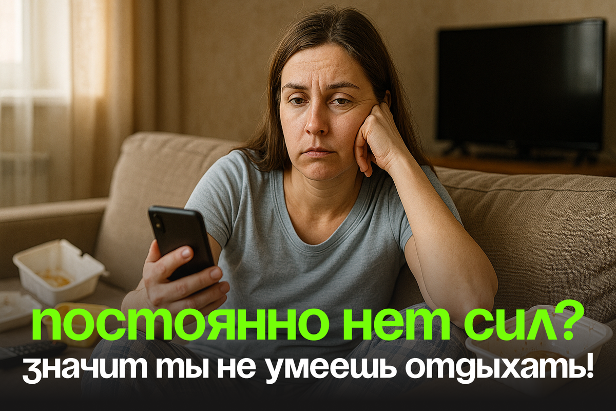 Представь себе такую сцену: Суббота, 14:00. Ты лежишь на диване, в руках телефон. Листаешь ленту, параллельно думаешь о понедельнике, о том, что нужно приготовить ужин, о подруге, которая не ответила на сообщение. Фоном идёт сериал, но ты не следишь за сюжетом. Через три часа встаёшь с дивана — и чувствуешь себя разбитой. Будто и не отдыхала вовсе.