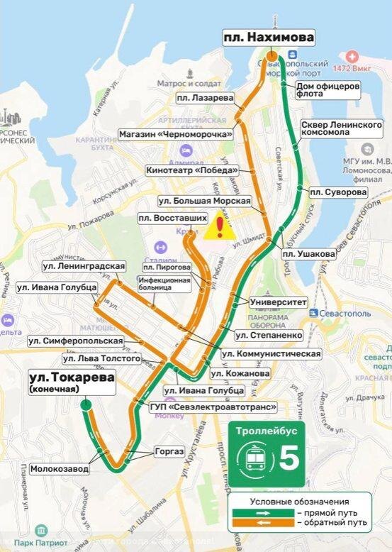 С 1 июля поменяется схема движения маршрута №5 общественного транспорта Как сообщили в ГУП «Севэлектроавтотранс», новая схема движения будет работать до окончания восстановительных работ на улице Адмирала Октябрьского. 📺СТВ 24 | Подписаться