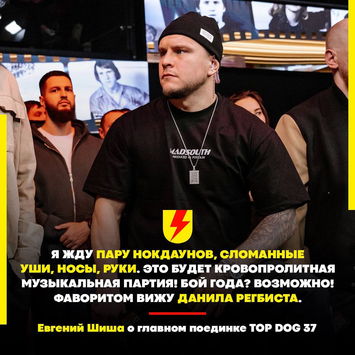 Евгений Шиша: “Бой Регбиста и Алекса Terrible – кровопролитная и захватывающая партия!” 💬 “Нас ждет захватывающая битва двух именитых в своей сфере людей. Это будет экшен, я жду минимум пару нокдаунов за бой, а также сломанные уши, носы, руки и несколько гематом. Бой на TOP DOG 37 станет кровопролитной и захватывающей музыкальной партией от Регбиста, в которую впишется шумная атака и громкий голос Алекса Terrible. Будет ли это боем года? Возможно. Но это по-настоящему интересный поединок, и я от всей души рекомендую не пропускать это побоище! Кого вижу фаворитом? Однозначно, Регбиста”. = = = = = = = 📺Смотри TOP DOG 37 в прямом эфире только на UDAR по ссылке уже 5 июля – taplink.cc/udar.tv