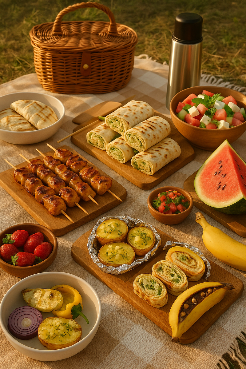 Лето не заканчивается: планируем августовский пикник с умом Август — один из лучших месяцев для отдыха на природе: уже не так душно, как в июле, но ещё по-летнему тепло и зелено. Именно сейчас наступает идеальное время для уютных посиделок на свежем воздухе. Но чтобы пикник прошёл действительно безупречно, важно не только выбрать красивое место, но и правильно собрать вещи и продумать меню. В этой статье — список must-have вещей для пикника в августе 2025 года и 5 пошаговых рецептов блюд, которые легко приготовить прямо на природе. Всё проверено — получится вкусно, сытно и незабываемо. Составляя список вещей, ориентируйтесь на длительность пикника, количество участников и формат (выезд на целый день, на вечер, с ночёвкой и т.д.). Вот базовый список, который вы можете адаптировать под себя: 1. Посуда и принадлежности: 2. Техника и удобства: 3. Защита и гигиена: 4. Еда и напитки: Ингредиенты (на 4 порции): Пошагово: Совет: Подайте с овощами на гриле — сладкий перец, цукини, красн