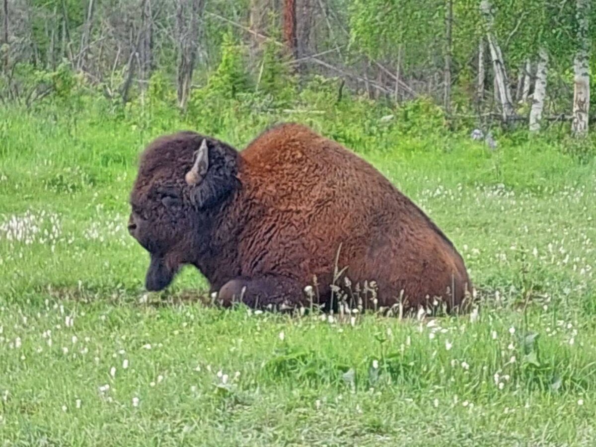 Бизоны 🦬 пасутся. И наши ботаники тоже) И флаг наш снова выгуляли, теперь уже в Якутии!