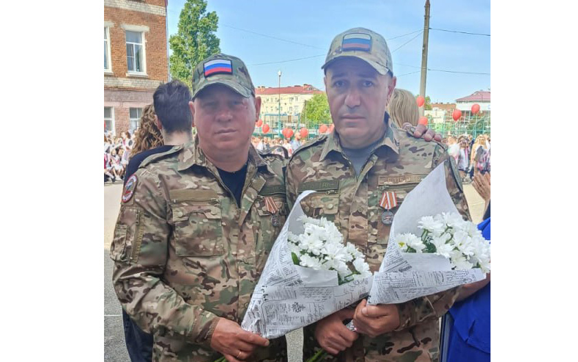 Бойцы на торжественной линейке Последнего звонка в школе №2 в Темрюке.