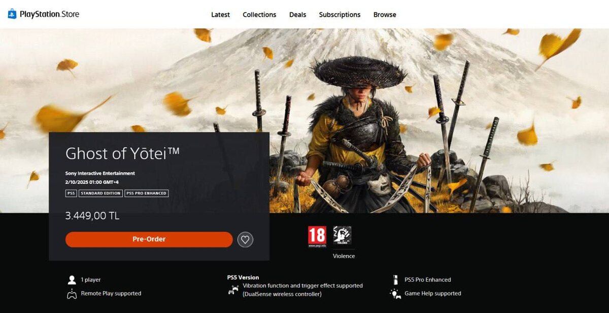 • Ghost of Yotei – новая цена 3449 лир (было 2799 лир)
