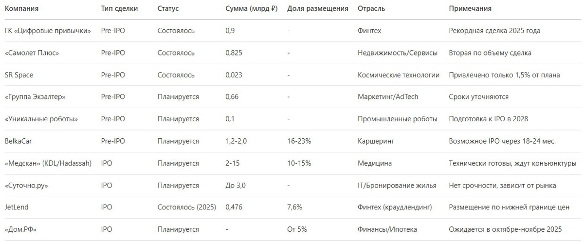 Π‘ΡΠ΅Π΄Π½ΠΈΠΉ ΡΠ΅ΠΊ ΡΠΎΡΡΠ°Π²ΠΈΡ β½500 ΠΌΠ»Π½, ΠΏΠ΅ΡΠ²ΡΠ΅ ΡΠ°Π·ΠΌΠ΅ΡΠ΅Π½ΠΈΡ ΠΎΠΆΠΈΠ΄Π°ΡΡΡΡ ΡΠΆΠ΅ Π² 2025 Π³ΠΎΠ΄Ρ ΠΠΎΡΠΊΠΎΠ²ΡΠΊΠ°Ρ Π±ΠΈΡΠΆΠ° ΠΏΠ»Π°Π½ΠΈΡΡΠ΅Ρ ΠΏΡΠΎΠ²Π΅ΡΡΠΈ ΠΎΠΊΠΎΠ»ΠΎ 50 ΡΠ΄Π΅Π»ΠΎΠΊ pre-IPO Π² Π±Π»ΠΈΠΆΠ°ΠΉΡΠ΅Π΅ Π²ΡΠ΅ΠΌΡ. ΠΠΎ ΡΠ»ΠΎΠ²Π°ΠΌ Π΄ΠΈΡΠ΅ΠΊΡΠΎΡΠ° ΡΡΠ½ΠΊΠ° Π°ΠΊΡΠΈΠΉ ΠΠΎΡΠ±ΠΈΡΠΆΠΈ ΠΠ»Π°Π΄ΠΈΠΌΠΈΡΠ° ΠΠ²ΡΠ°ΡΠΎΠ²Π°, ΠΊΠΎΠΌΠΏΠ°Π½ΠΈΠΈ Π²ΡΠΉΠ΄ΡΡ Π½Π° Π±ΠΈΡΠΆΡ ΠΏΠΎ ΠΌΠ΅ΡΠ΅ ΡΠ½ΠΈΠΆΠ΅Π½ΠΈΡ ΠΊΠ»ΡΡΠ΅Π²ΠΎΠΉ ΡΡΠ°Π²ΠΊΠΈ, ΡΡΠΎ ΡΠ»ΡΡΡΠΈΡ ΡΡΠ»ΠΎΠ²ΠΈΡ Π΄Π»Ρ ΠΏΡΠΈΠ²Π»Π΅ΡΠ΅Π½ΠΈΡ ΠΈΠ½Π²Π΅ΡΡΠΈΡΠΈΠΉ, ΡΠΎΠΎΠ±ΡΠ°ΡΡ Π ΠΠ. Π‘ΡΠ΅Π΄Π½ΠΈΠΉ ΡΠ°Π·ΠΌΠ΅Ρ ΡΠ΄Π΅Π»ΠΊΠΈ ΠΎΡΠ΅Π½ΠΈΠ²Π°Π΅ΡΡΡ Π² β½500 ΠΌΠ»Π½. ΠΠ»ΡΡΠ΅Π²ΡΠ΅ ΠΏΡΠ΅Π΄ΡΡΠΎΡΡΠΈΠ΅ ΡΠ΄Π΅Π»ΠΊΠΈ: βͺοΈΒ«ΠΠ΅Π΄ΡΠΊΠ°Π½Β» (ΠΌΠ΅Π΄ΠΈΡΠΈΠ½ΡΠΊΠΈΠ΅ ΡΠ΅Π½ΡΡΡ KDL ΠΈ Hadassah) β ΠΏΠ»Π°Π½ΠΈΡΡΠ΅Ρ IPO Π² 2025 Π³ΠΎΠ΄Ρ Ρ ΡΠ°Π·ΠΌΠ΅ΡΠ΅Π½ΠΈΠ΅ΠΌ 10-15% Π°ΠΊΡΠΈΠΉ. βͺοΈΒ«Π‘ΡΡΠΎΡΠ½ΠΎ. ΡΡΒ» β ΡΠ°ΡΡΠΌΠ°ΡΡΠΈΠ²Π°Π΅Ρ Π²ΡΡ