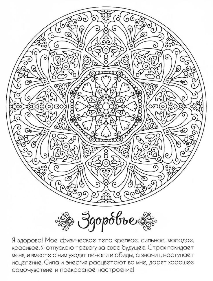 Уход за собой - это не только уход за своим телом, кожей, волосами, ногтями. Иногда внутреннее состояние важнее, чем внешняя оболочка. Ведь если женщина излучает ту самую непостижимую энергию, мужчины могут не заметить какие-то недостатки во внешнем виде. Так как он будет полностью под влиянием твоей волшебной энергетики. С этим состоянием можно работать по разному. Одной из самых доступных практик является Арт-терапия. Запасись цветными карандашами, фломастерами, маркерами или красками. * Обзор на эти инструменты скоро опубликую у себя в блоге. Выбирай то, что тебе нравится больше всего. То чем тебе нравится рисовать. Есть не плохие сборники на Озон. Они очень качественные и имеют увлекательное текстовое сопровождение: Но я оставлю для трбя несколько шаблонов в этой статье. Ты можешь скачать их, распечатать и заниматься арт-терапией, когда захочешь. Обязательно выделяй время для того, чтоб развивать в себе творческую энергию. Начинать лучше с мандалы "Гармония". Почему