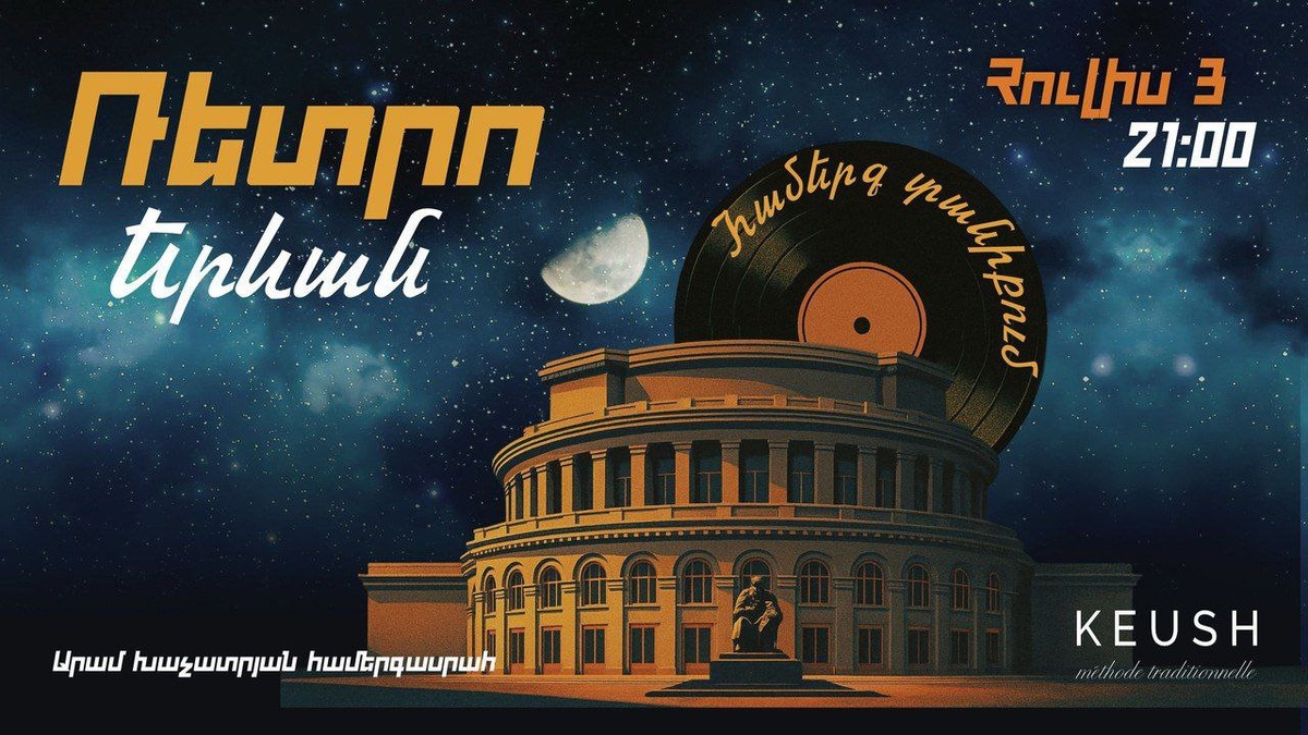 Концерт "Ретро Ереван" на крыше Оперы Окунитесь (https://khachaturianhall.am/en/main/event/id/471/) в атмосферу старого Еревана под звёздным небом, где прозвучат любимые ереванские ретро-песни в исполнении Маши Мнжоян, Вардана Бадаляна и Арпи. 📍Проспект Маштоца, 46 🗓️ 3 июля, в 21:00